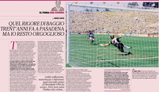 当然,以他的常识,肯定知道这会引发全世界九级地震的反弹。1994世界杯,是整个世界杯战史上最戏剧性、最动人的悲剧史诗,没有巴乔,意大利连决赛的皮毛都摸不到。点球大战时,意大利头炮巴雷西与巴西队桑托斯都哑了,但接下来巴西队三发全中,而意大利第四发马萨罗不进,轮到巴乔上时,即使射进,巴西还有第五射(当时是贝贝托),也就是说,巴西队还有一个备用“格罗索”!